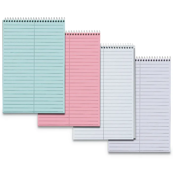 Steno notebook features a fashion pastel color to help organize projects while being easy on the eyes. Each sheet is Letr-Trim perforated for clean and easy sheet removal and Gregg-ruled in light gray with a center line. Notebook contains 80 sheets of color-coordinated, premium bond paper. Top binding is ideal for both right-handed and left-handed writers. Coil-lock wire binding prevents scratched desktops or snagged clothing. Stiff, 40 point backboard is a perfect writing surface.
