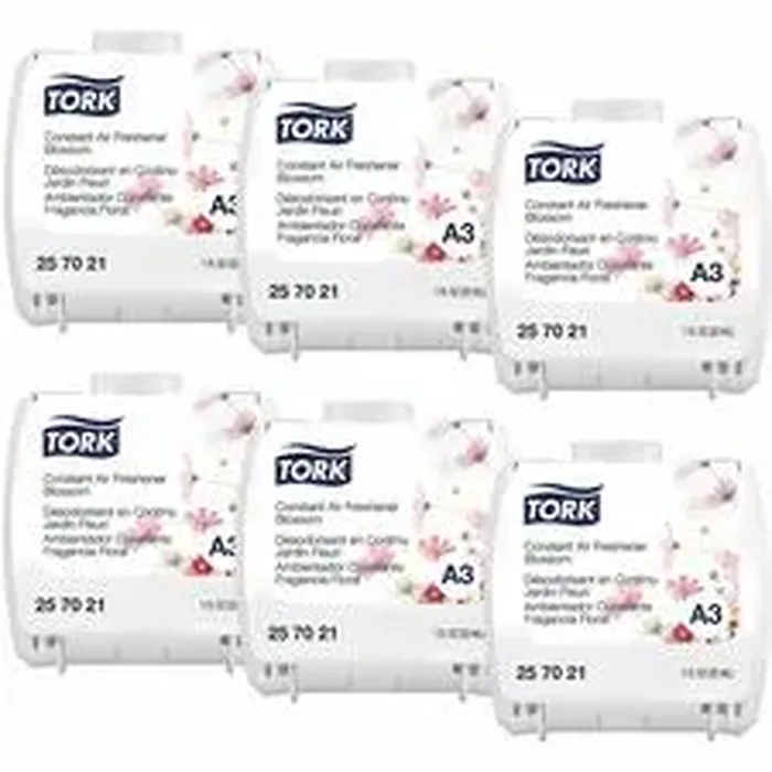 General InformationManufacturer:Essity Hygiene and Health AB Manufacturer Part Number:257021 Manufacturer Website Address:http://www.essity.com Brand Name:TORK Product Name:Constant Air Fresheners Blossom Scent Marketing Information:Tork Constant Air Freshener Blossom Scent helps to keep washrooms feeling welcoming and fresh, leaving a pleasant balance of delicate floral notes and odor neutralizer. Suitable for Tork Constant Air Freshener Dispensers, which are proven easy-to-use for cleaners.