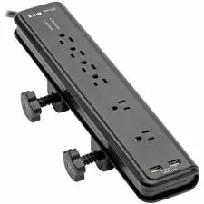 Isobar Premium surge and noise protector protects sensitive computer, networking and telecom equipment. Loaded with high-quality components, all-metal case and unique noise filtration system, the Isobar offers a high level of protection attainable in a multi-outlet strip. Robust surge suppression circuits with sine-wave tracking offer extreme levels of protection against the heaviest surge conditions. Surge protector offers six outlets arranged in three filter banks to prevent system crashes, reboots and performance problems common as noisy system peripherals are powered off and on. Surge suppression rated at 3330 joules/97,000 amps offers network-grade protection. Widely spaced NEMA 5-15 outlets accommodate up to four large transformer plugs without blocking outlets. Diagnostic LEDs confirm power availability, line fault and protection status. It includes 6' AC line cord with space-saving angled input plug, keyhole mounting tabs and a set of four child safety covers.