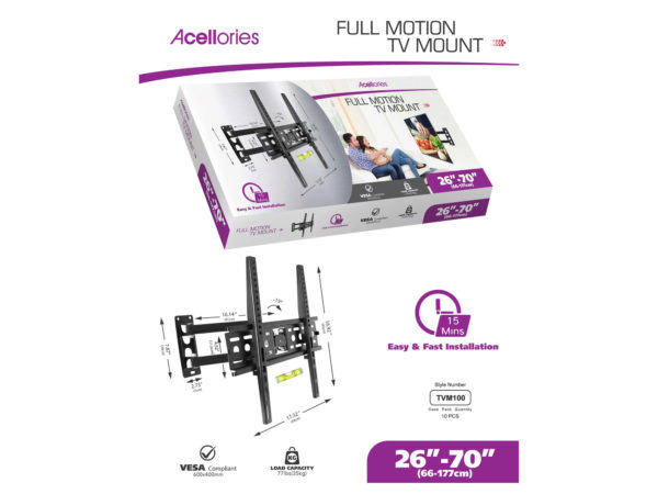 Acellories Full Motion 26" - 70" TV Mount with Easy Installation