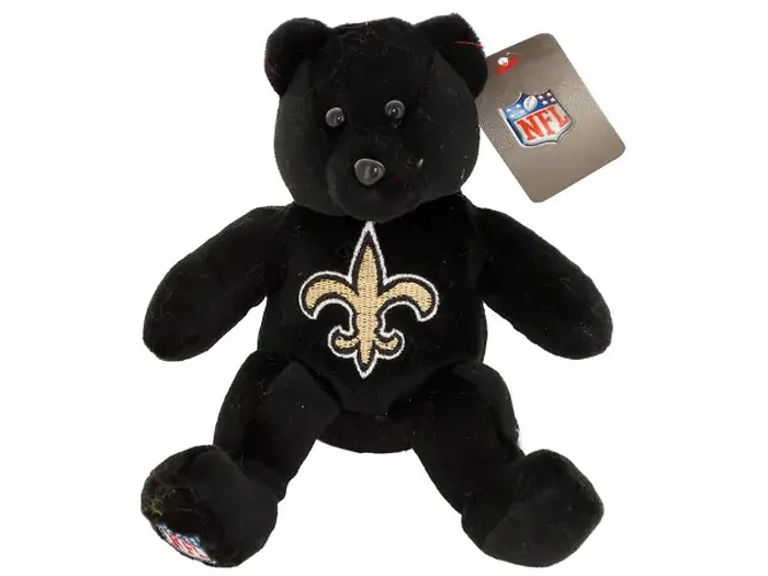 Show your support for the New Orleans Saints with this adorable NFL Licensed Plush Bear. This soft black bear is designed to showcase your team spirit, featuring the Saints logo prominently displayed on its chest and the official NFL logo on its right foot.