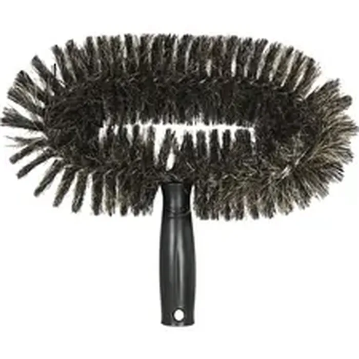 Cleaning brush features an oval design to efficiently clean ceiling fans, walls and ceilings. Heavy-duty, galvanized wire and 49 percent horsehair bristles are durably engineered for daily use. Brush is perfect for dusting rough surfaces, removing cobwebs and dust from flat objects. Brush is designed for use with all Unger telescopic poles (sold separately).