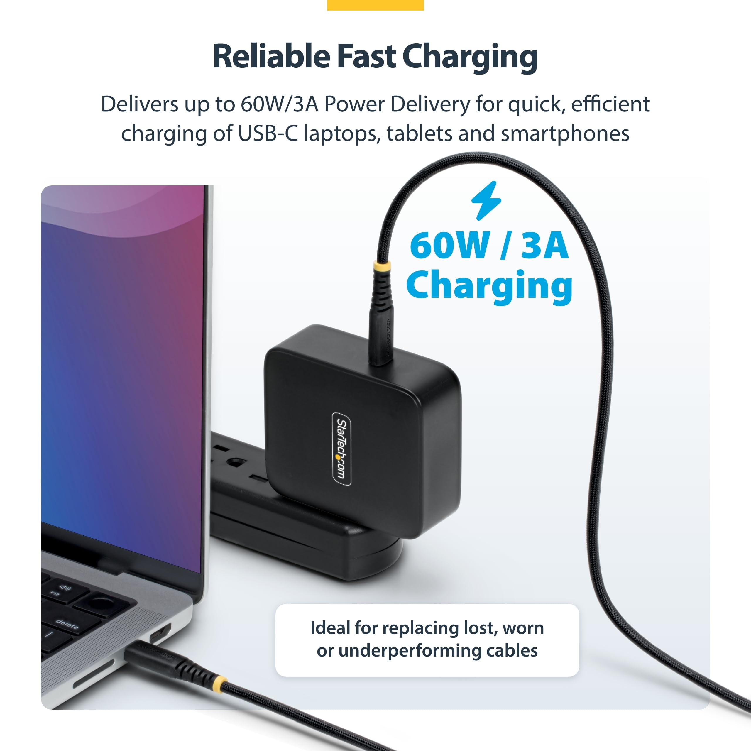 3FT (91CM) USB-C CHARGING CABLE, 60W (3A) PD, DUAL-LAYER BRAIDED NYLON/TPE JACKET, RUGGED USB C CHARGING CORD, USB 2.0 LAPTOP CHARGER CABLE