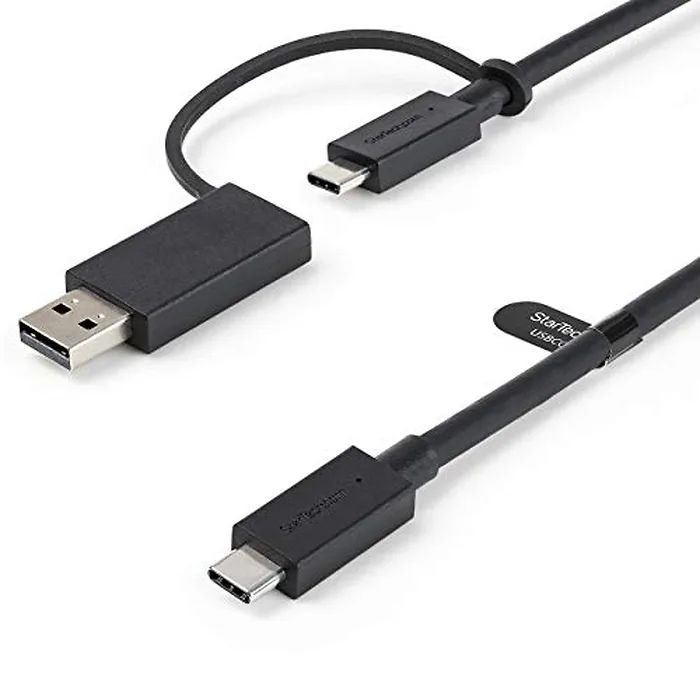 3ft (1m) USB-C Cable with USB-A Adapter Dongle - Hybrid 2-in-1 USB C Cable w/USB-A - USB-C to USB-C (10Gbps/100W PD), USB-A to USB-C (5Gbps) - Ideal for Hybrid Docking Station (USBCCADP)