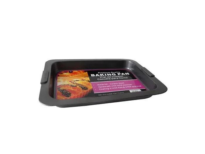 This premium non-stick baking tray is designed for effortless baking and cooking. Featuring built-in handles for easy handling and a durable non-stick coating for quick cleanup, it's perfect for a variety of kitchen tasks. The deep interior allows you to bake anything from cookies to lasagna without spills. Dimensions: 17" x 12 1/2" x 2".