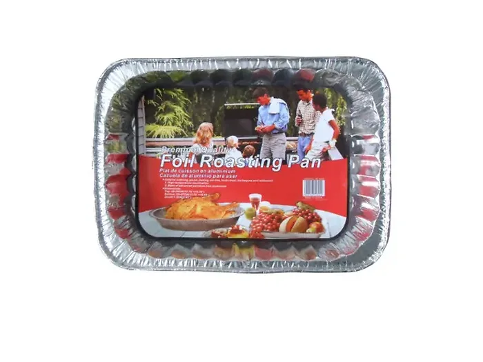 The Extra-Large Disposable Aluminum Roasting Pan is perfect for any busy kitchen. Ideal for roasting chicken, turkey, or any large meal, this pan is a convenient and durable option for cooking for a crowd.