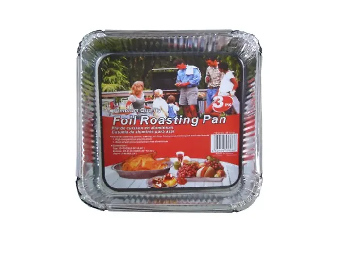 These square disposable foil roasting pans are perfect for all your cooking needs. Whether you're serving, baking, roasting, or barbecuing, these versatile pans make cleanup a breeze. Each pack includes three pans, measuring 10 inches by 10 inches and 2 inches deep, designed to withstand high temperatures.