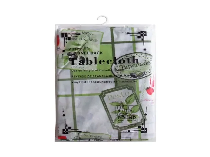 This round flannel-backed vinyl tablecloth adds a touch of style and functionality to any round table in your kitchen or dining room. It's versatile enough for playrooms and perfect for outdoor picnics. Made from textured vinyl with a soft polyester flannel backing, it measures 70" round, providing a good fit for most tables.