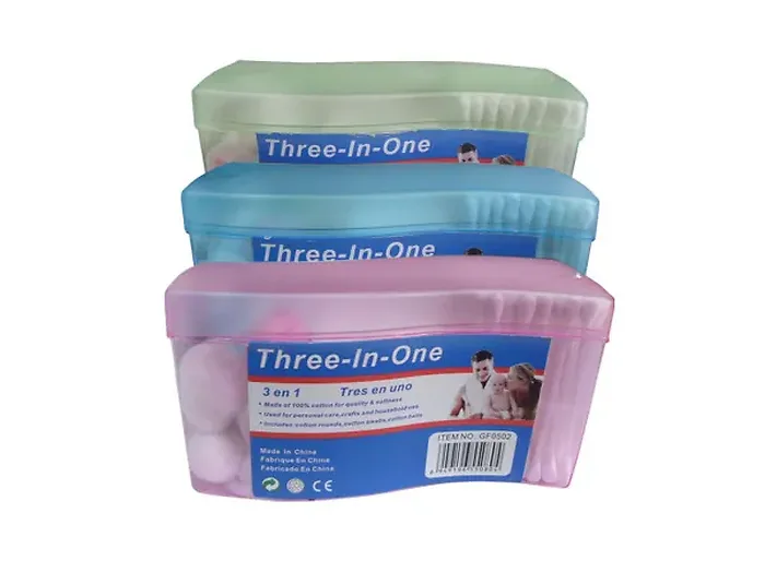 This versatile pack of cotton products is designed to meet all your baby care, personal hygiene, and crafting needs. Each box contains three types of cotton essentials: cotton pads (10 count), cotton balls (10 count), and cotton swabs (100 count). With a vibrant color selection of pink, blue, and green, this set is perfect for home use or on-the-go.