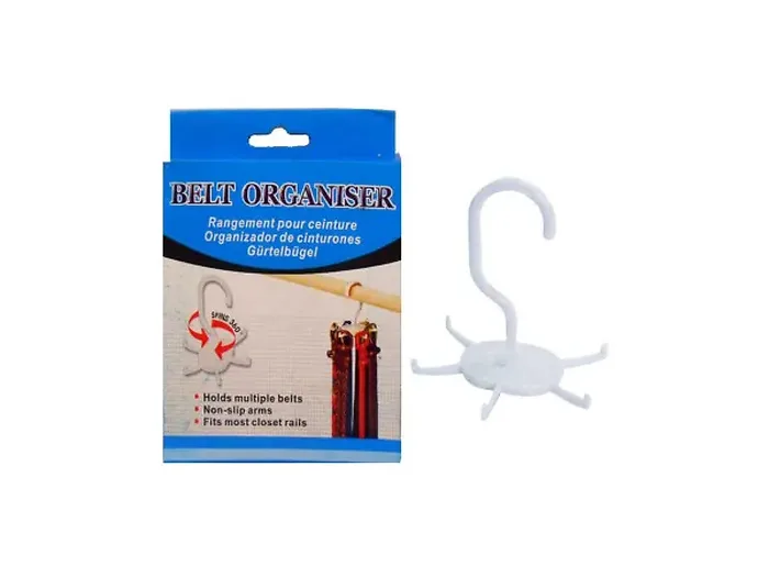 Keep your belts neatly organized and easily accessible with our Space-Saving Belt Organizer. Designed to fit on most closet rails, this practical storage solution features no-slip arms that securely hold multiple belts without slipping off. Made from durable plastic, it is built to last while maximizing your space.