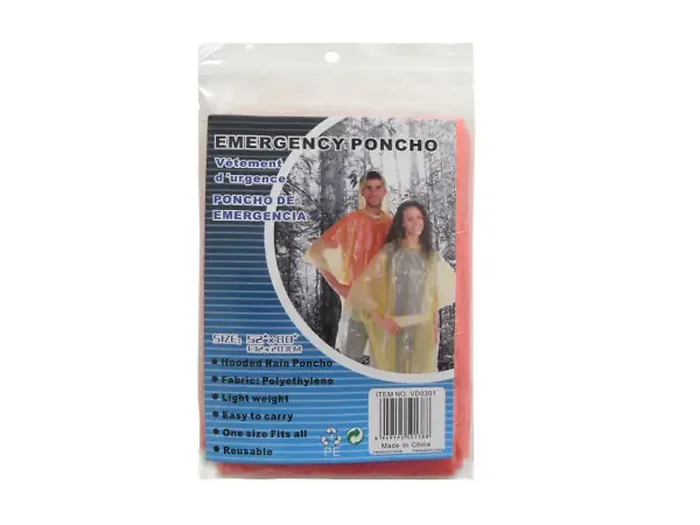 Be prepared for any weather with this reusable emergency poncho. Perfect for your glove box, camping gear, or RV, it offers reliable protection from rain and wind. The poncho is lightweight and can fit into your backpack, briefcase, or purse, making it a convenient addition for outdoor activities or unexpected showers.