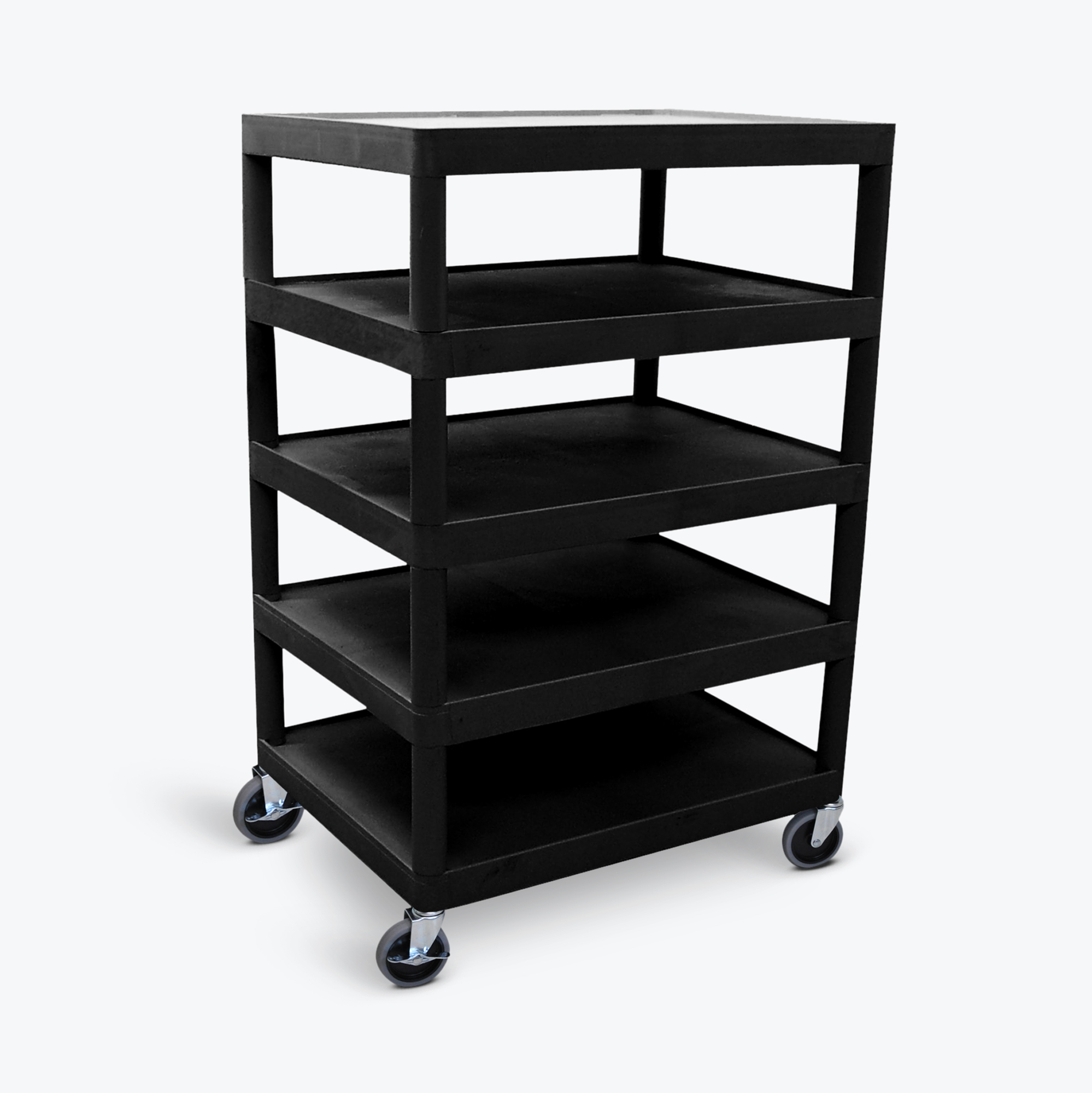 Luxor Five Flat Shelf Black Utility Cart