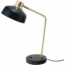 Maintain organization in style with this translucent, black desk lamp with chrome accents. The shade provides reliable protection against dings, dents and other damage while the flexible arm makes it easy to direct light as necessary. Organizing supplies is simple with the built-in base compartments. This V-Light Organizer Desk Lamp boasts a front slot for holding a tablet or phone. Two AC outlets on the back provide power to small devices. Use the on/off switch located on the top of the shade. Desk lamp uses one Type-A 10-watt LED bulb (included).