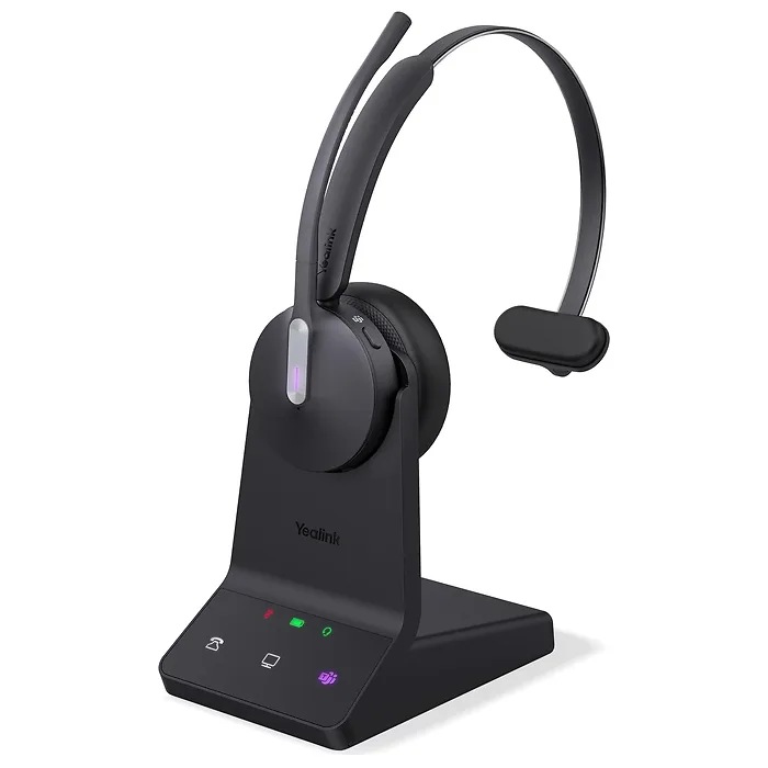 The Yealink WH64 Mono Teams Headset offers the perfect combination of DECT and Bluetooth connectivity, designed for seamless communication in any environment. Its sleek design and lightweight build ensure maximum comfort during long hours of use. The headset is fully compatible with Microsoft Teams, featuring a dedicated Teams button for instant access to your calls and notifications.