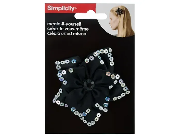 Black Satin Sequin Flower Headband Accent