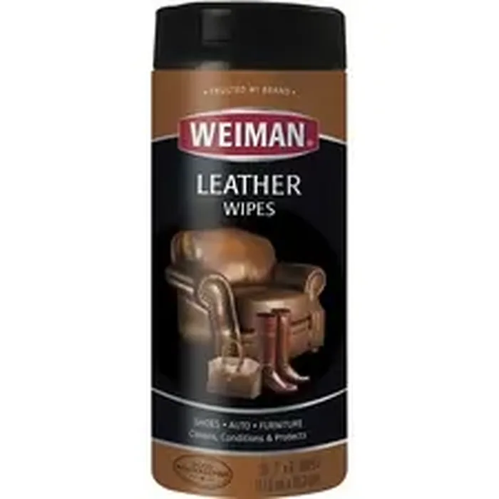 Leather wipes help you care for and maintain the natural beauty of leather products. Six natural oils rejuvenate, moisturize and restore leather while the UVX-15 sunscreen protects it from the damaging effects of the sun. Premoistened wipes can be applied directly onto smooth, finished leather surfaces for immediate cleanings. Leather wipes are perfect for cleaning shoes, handbags, purses, briefcases, clothes and more.