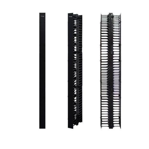 The Panduit Vertical Cable Management Panel is designed to organize and manage cables effectively in a server rack environment. This 45U vertical panel provides efficient routing and management, ensuring optimal airflow and easy access to cables.