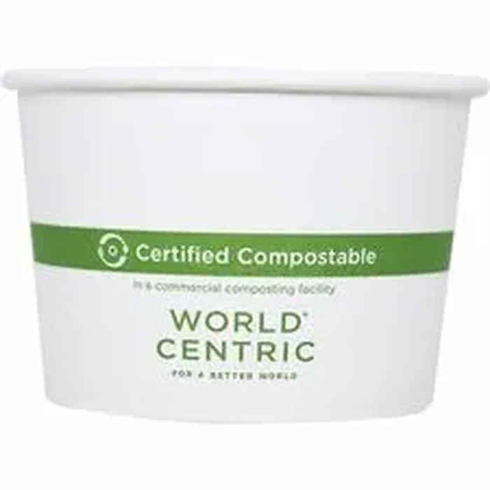World Centric Compostable White Paper Bowl - Food, Soup, Ice Cream, Commercial - Disposable - White - Paper Body - 10 / Carton