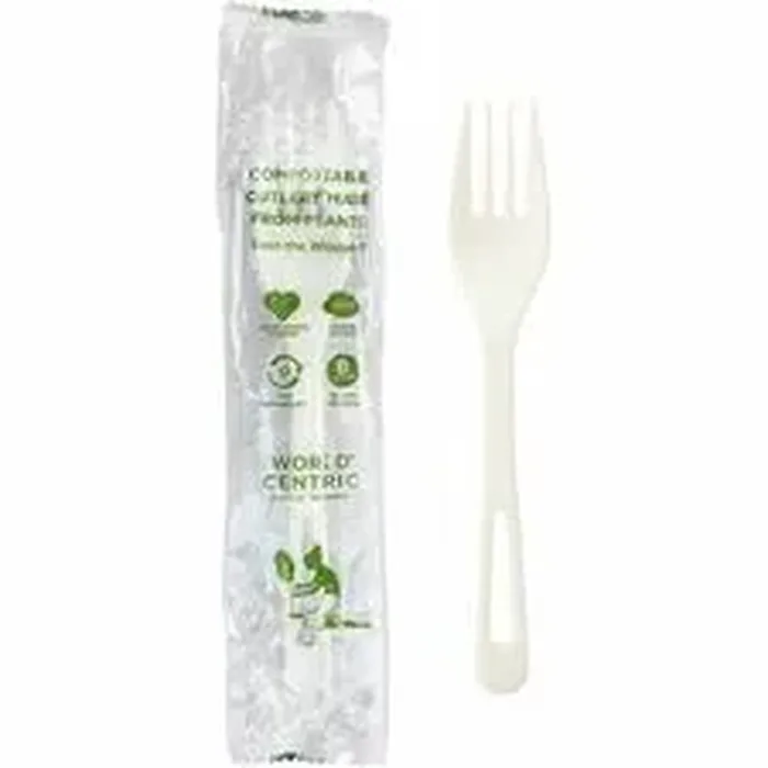 World Centric 6.3" TPLA Fork - Wrapped - Case of 750 - Fork - Fork - Dishwasher Safe - Talc-filled Polylactic Acid (TPLA) - 750 / Case