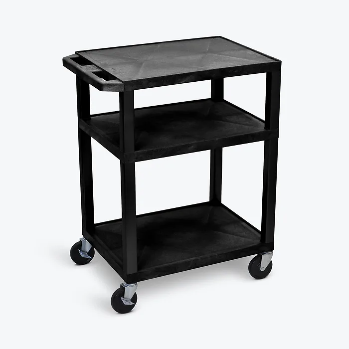 Luxor Tuffy Black 3 Shelf AV Cart w/ Electric