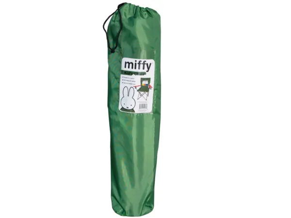 This Miffy Kids Folding Chair is perfect for your little ones to lounge both indoors and outdoors. Designed with a kid-size self-locking mechanism, it boasts a sturdy metal frame and a durable nylon seat adorned with adorable Miffy graphics.