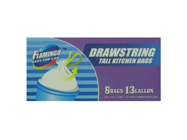 Keep your kitchen tidy and your trash contained with our durable drawstring kitchen trash bags. Each bag has a secure drawstring closure to prevent spills while transporting trash, making cleanup easy and mess-free.