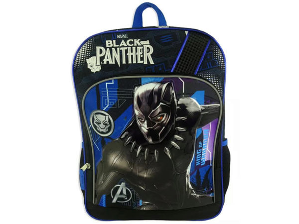 Marvel's Black Panther 16" Avengers Backpack w/Bottle Holder Take Black Panther, the king of Wakanda to school with Marvel Licensed Black Panther 16" Avenger Backpack. The backpack includes reflective inserts for night visibility on front and back. Supports up to 50lbs and provides padding for comfort. The backpack has five storing compartments; two are mesh water bottle holders, one tech sleeves. Shoulder straps are padded and adjustable. Features zipper closure and its is approximately 16" x 11.50" x 5" in size. Comes packaged with tags.
