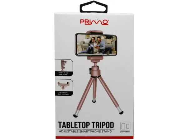 Introducing the Primo Rose Gold Smartphone Desktop Tripod Stand, designed for stability and versatility. This stylish tripod is perfect for capturing photos, streaming videos, or making video calls. Its elegant rose gold finish adds a touch of sophistication to your setup while providing reliable support for your device.