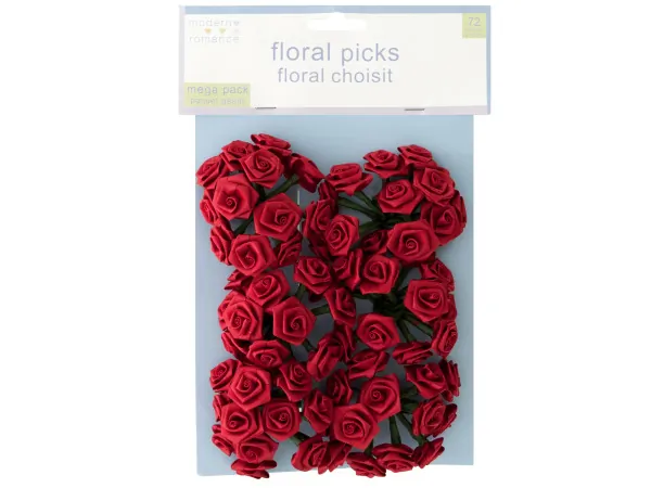 Add a touch of elegance to your decorations with our Beautiful Red Rose Floral Picks Set. Perfect for weddings, parties, or home decor, this set includes 72 ribbon roses with flexible green stems, making them ideal for a variety of creative designs.