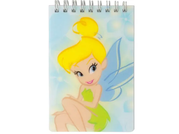 The notebook is conveniently bound with durable spiral metal wire, allowing it to lay flat for easy writing. Its compact size makes it ideal for carrying in a backpack or purse, measuring approximately 3.375" x 5.25". Available in assorted styles, this notebook is a delightful addition for any Tinkerbell fan!