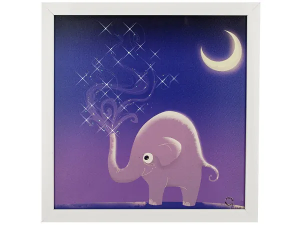 Add a touch of magic to your child's space with the Whimsical Starry Elephant Night Light Art. This enchanting piece brings playful pals and serene lullabies to life, creating an inviting atmosphere perfect for bedtime stories and imaginative adventures.