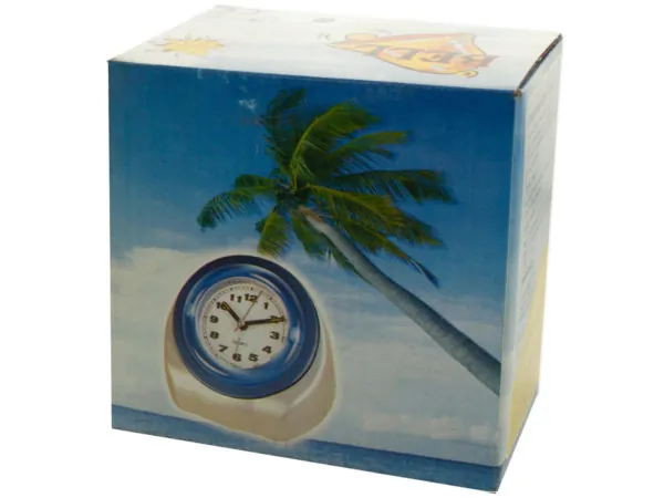 The clock measures approximately 4.75" x 3.75" and requires 3 'AA' batteries (not included). It comes in assorted vibrant colors, adding a touch of style to any room.