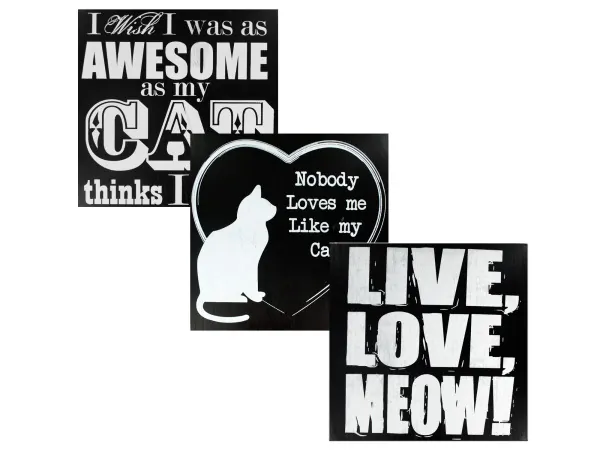 Celebrate the bond between you and your feline friend with our Chic Black & White Cat Love Wooden Wall Art. This stylish decor piece features a charming and playful saying that is printed in white on a sleek black wood square, making it a perfect addition to any cat lover's home.