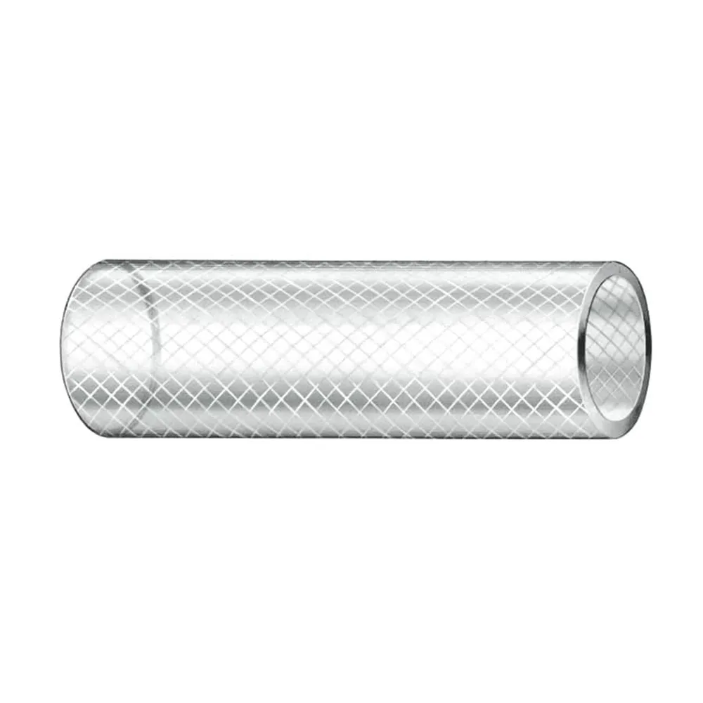 Clear FDA-grade PVC hose with heavy-duty nylon reinforcement provides excellent flexibility and bend radius.