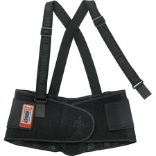 The ultimate hybrid of safety, support and comfort, this ProFlex High-performance Back Support helps you win your workday tug of war and reduce the risk of back injuries. Nonconductive, patented Sticky Fingers Stays deliver firm and continuous lower back support and offer the greater durability and gripping properties than industry-standard rubber track tape. Power Panel Positioners keep power panels in place so they are accessible when needed for improved functionality and compliance. Innovative V-shape and adjustable, detachable suspenders allow a better fit. Design also features spandex body material and stretchable bias binding with zigzag stitching. Back support is great in material handling, construction, warehouse/distribution, maintenance, freight/baggage, assembly/fabrication and landscaping/grounds. The medium size fits waists that measure from 30" to 34".