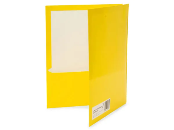 Organize your documents efficiently with this pack of 10 Yellow Glossy Twin Pocket Folders with Prongs. Each folder offers durability and a vibrant yellow color, making it ideal for school projects, office paperwork, and home organization.