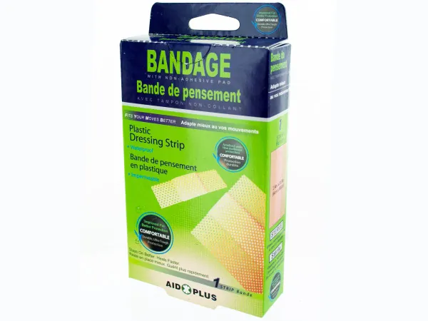 This waterproof adhesive bandage is designed to stay on securely while promoting faster healing of cuts and scrapes. Each pack contains a single beige bandage, elegantly packaged in a convenient hanging box. Bandages measure approximately 2 1/4" x 3", making them perfect for a variety of wounds.