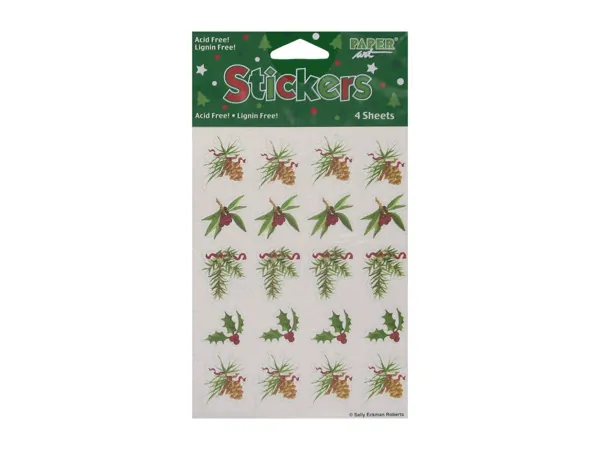 Bring the festive spirit to your card-making and crafts with our Holiday Holly & Pine Sticker Pack. This collection features beautifully designed stickers of ribbon-tied holly, pine cones, and berries. With 20 stickers on each of the 4 sheets, you'll have plenty to use for your holiday creations. The stickers are acid and lignin free, making them perfect for scrapbooking and a variety of other paper crafting projects.
