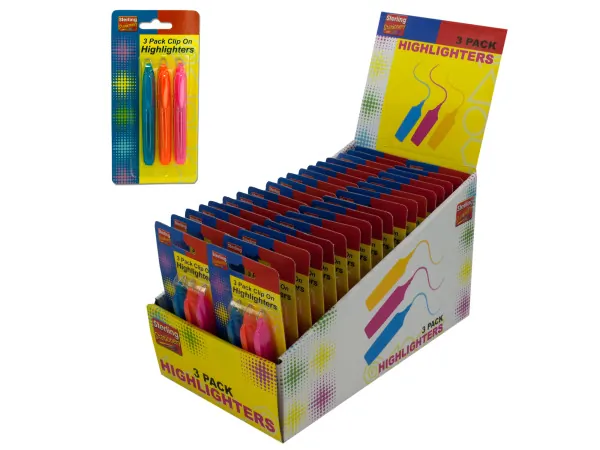 Each highlighter features a convenient small metal hook that allows it to be easily attached to lanyards, backpacks, or necklaces for quick access anywhere. Measuring approximately 3 1/2" long, these mini highlighters are both practical and portable. The set comes packaged in a blister pack and the countertop display includes 36 packages for easy retail presentation.