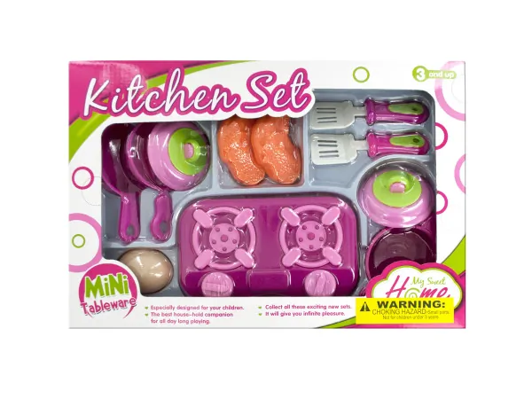 Unleash your child's imagination with the Deluxe Mini Kitchen Stove Play Set. This vibrant 11-piece set is perfect for pretend play, featuring a mini stovetop with dual burners, accompanied by pots, pans, utensils, and even two pieces of chicken and an egg. Designed for children aged 3 and up, it encourages creativity and fine motor skills.