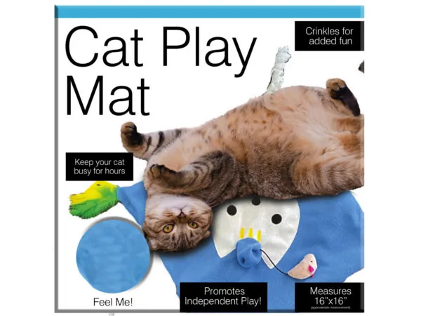 Keep your beloved feline entertained and engaged with our Interactive Cat Play Mat! Designed for cats that need stimulation while you’re away, this mat encourages independent play and promotes an active lifestyle. Measuring 16" x 16", it features a blue background adorned with a delightful illustration of a white cat.