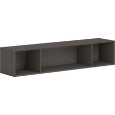 This wall-mounted storage is part of the HON Mod Desk Collection that delivers simplicity and adaptability to enhance your productivity. Contemporary design feels perfectly at home in either a private office or an open floor plan. The 66" wide Mod storage cabinet mounts on the wall to add storage space without sacrificing floor space. Its open interior offers several cubic feet of storage space. Optional doors (sold separately) can be added to increase privacy. Durable, Slate Teak laminate is scratch-resistant, spill-resistant and stain-resistant. Slate Teak matches other Mod elements (sold separately) so you can create an office suite to fit your needs.