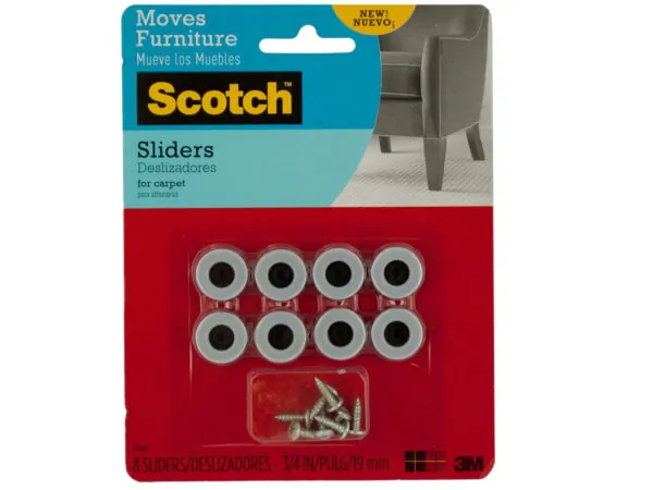 Transform the way you move your furniture with the Scotch Carpet Furniture Sliders. This convenient 8-piece set is designed specifically for easy sliding over carpeted surfaces, eliminating the strain of lifting.