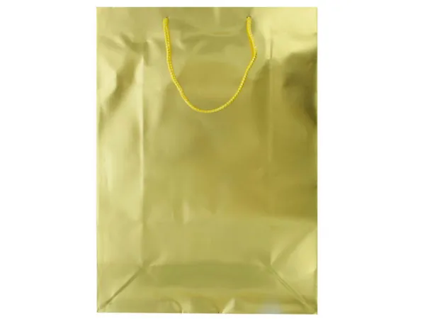 Surprise your loved ones with this Elegant Large Matte Gold Gift Bag, perfect for any occasion. The bag is designed in a stunning solid gold finish and comes with stylish yellow and gold woven nylon handles for easy carrying.