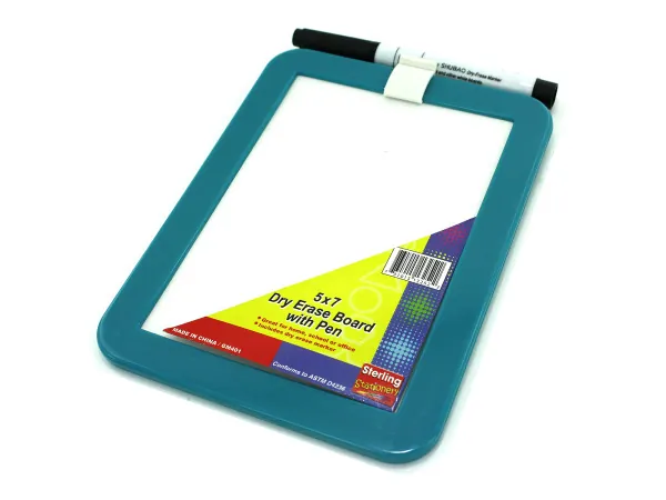 This compact dry erase board is ideal for both home and office use. It features a versatile design with a magnetic back, allowing it to be easily mounted on magnetic surfaces. The board comes with a dry erase marker and includes a convenient clip for easy storage. Available in assorted colors, the plastic frame adds a splash of color to your workspace.