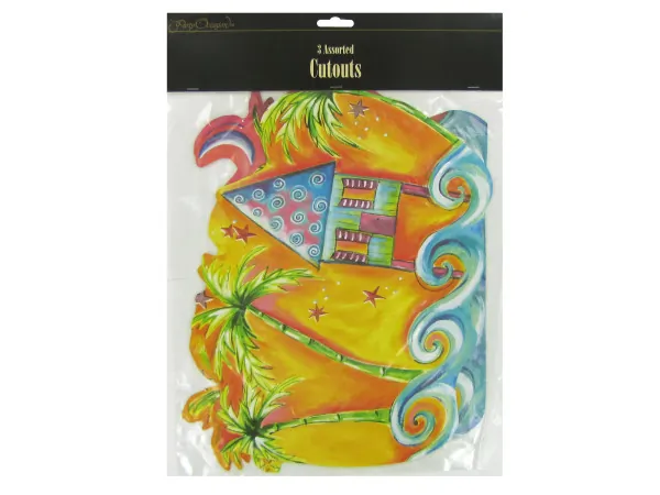 Add a vibrant touch to your tropical-themed party with these eye-catching wall decor cut-outs. Featuring stunning scenes of palm trees and a beach hut, these colorful decorations are perfect for enhancing the festive atmosphere. Each cut-out measures 11" x 8 1/2", making them a great size for hanging on walls, doors, or windows.