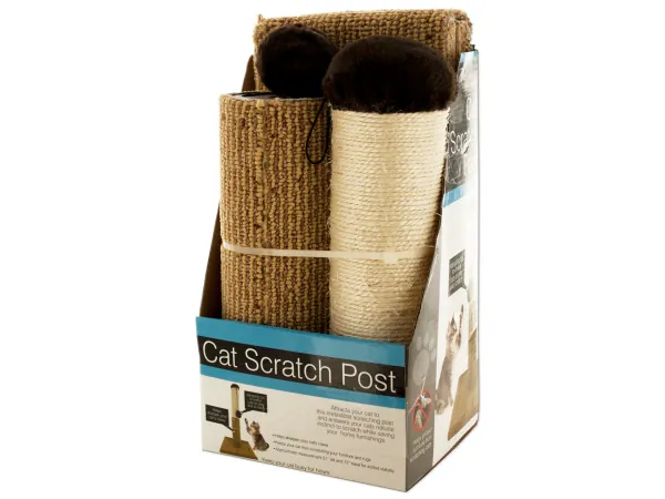 Engage your cat with the Deluxe Cat Scratch Post featuring a plush teaser toy. This innovative design combines a sturdy carpeted base with a dual-texture scratching area, catering to your cat's natural scratching instincts. The post measures 21 inches tall and offers a 12-inch base for enhanced stability. It comes complete with a rattling toy that hangs enticingly, ensuring hours of playful entertainment while protecting your furniture.