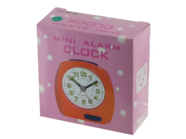 Easily tell time with this Compact Colorful Quartz Alarm Clock. Featuring a sleek and compact design, this plastic alarm clock has a large numbered display for easy readability and large buttons for simple operation.