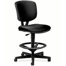 Volt task stool offers black leather upholstery, comfort, function, and style and adapts to each user with simple comfort controls for added flexibility. Generous proportions and a contoured back deliver optimal comfort. Functions include 360-degree swivel and pneumatic seat-height adjustment from 22-7/8" to 32-3/8". The footring adjusts in height easily with a simple knob for the best position for your legs and feet. The five-star base includes 2-1/2" dual-wheel, hooded casters for easy chair movement. The generously cushioned seat and distinctive, V-shaped back are covered in durable leather. Seat measures 19" wide x 20" deep. The back size is 16-1/2" wide x 20" high. Stool also features a plastic outer back, and frame is available in black only. Stool meets or exceeds applicable ANSI/BIFMA requirements.