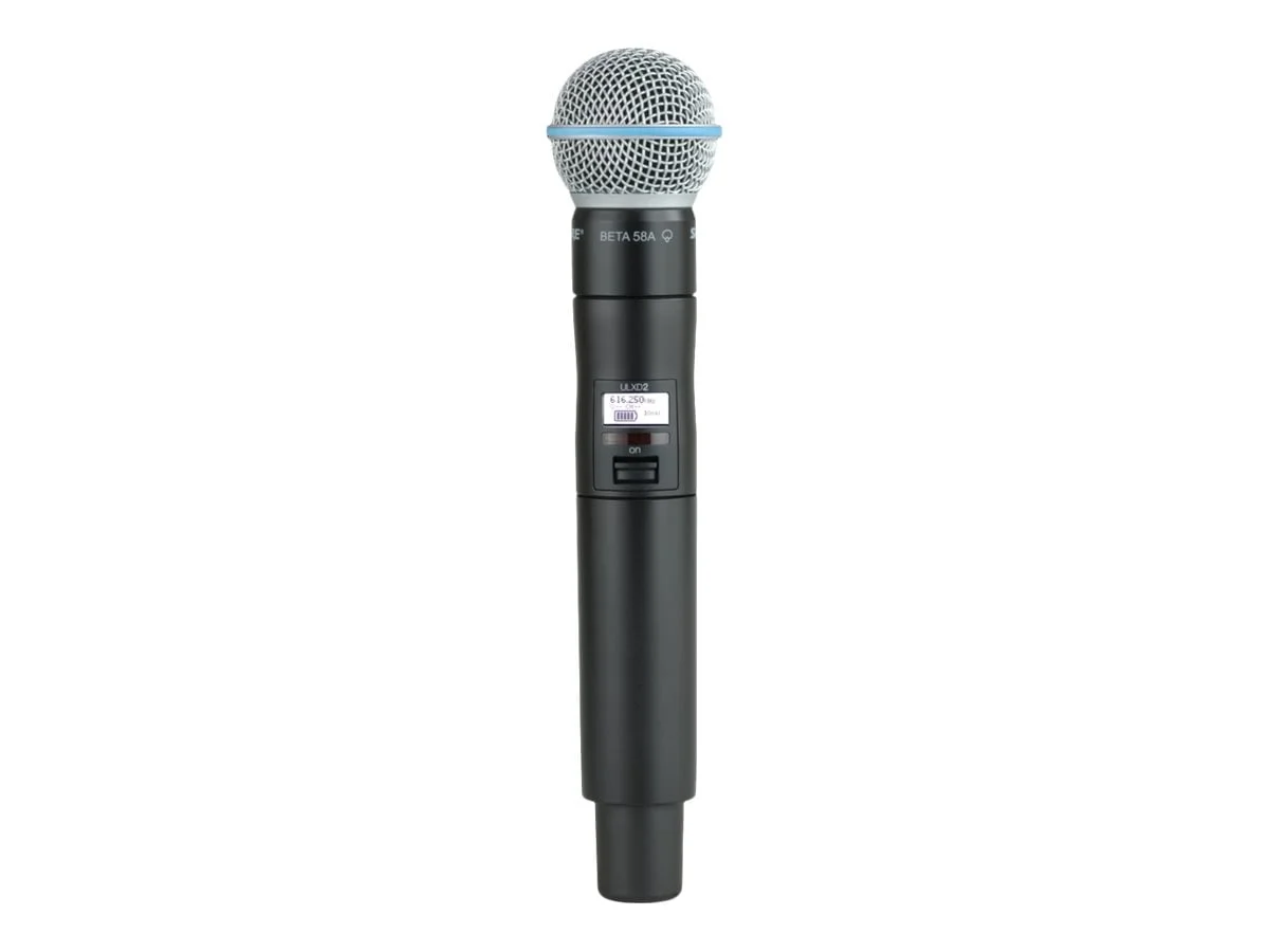 The Shure ULX-D Digital Handheld Transmitter delivers exceptional audio quality and clarity with its Beta 58A dynamic microphone cartridge. Designed for professional use, it features a 24-bit/48 kHz converter for pristine sound reproduction.
